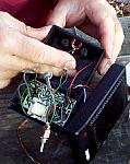 Drill 2 holes about ¼ to ½ apart (or just one if using the two color LED) of appropriate size in the speaker case to mount the LEDs in. Locate these holes where the LEDs can be seen while the user is holding the unit. Make sure the location you chose, will allow components to fit back in the case without the LEDs or wires getting in the way.